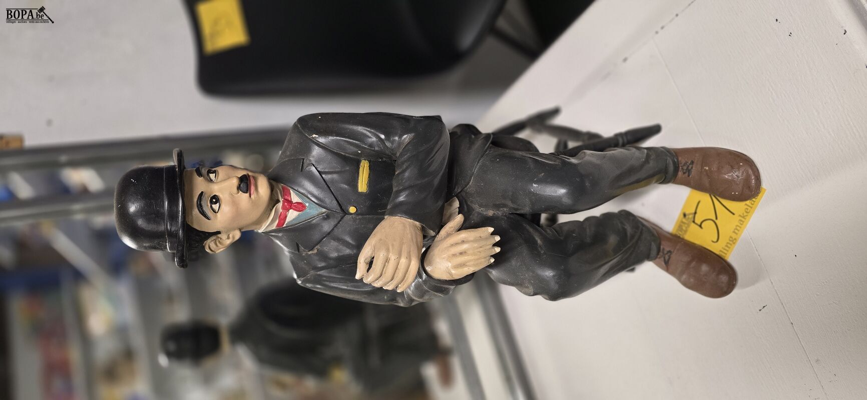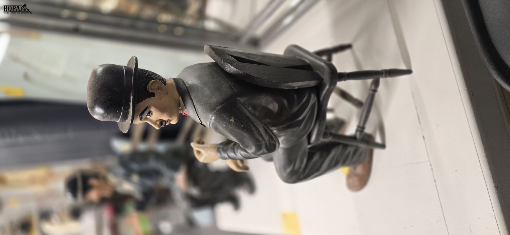 Charlie Chaplin zitten op stoel, hoogte ong 57 cm