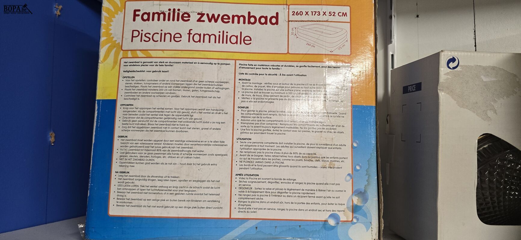 Familie opblaasbaar zwembad, Afm 260 x 173 x H 52 cm