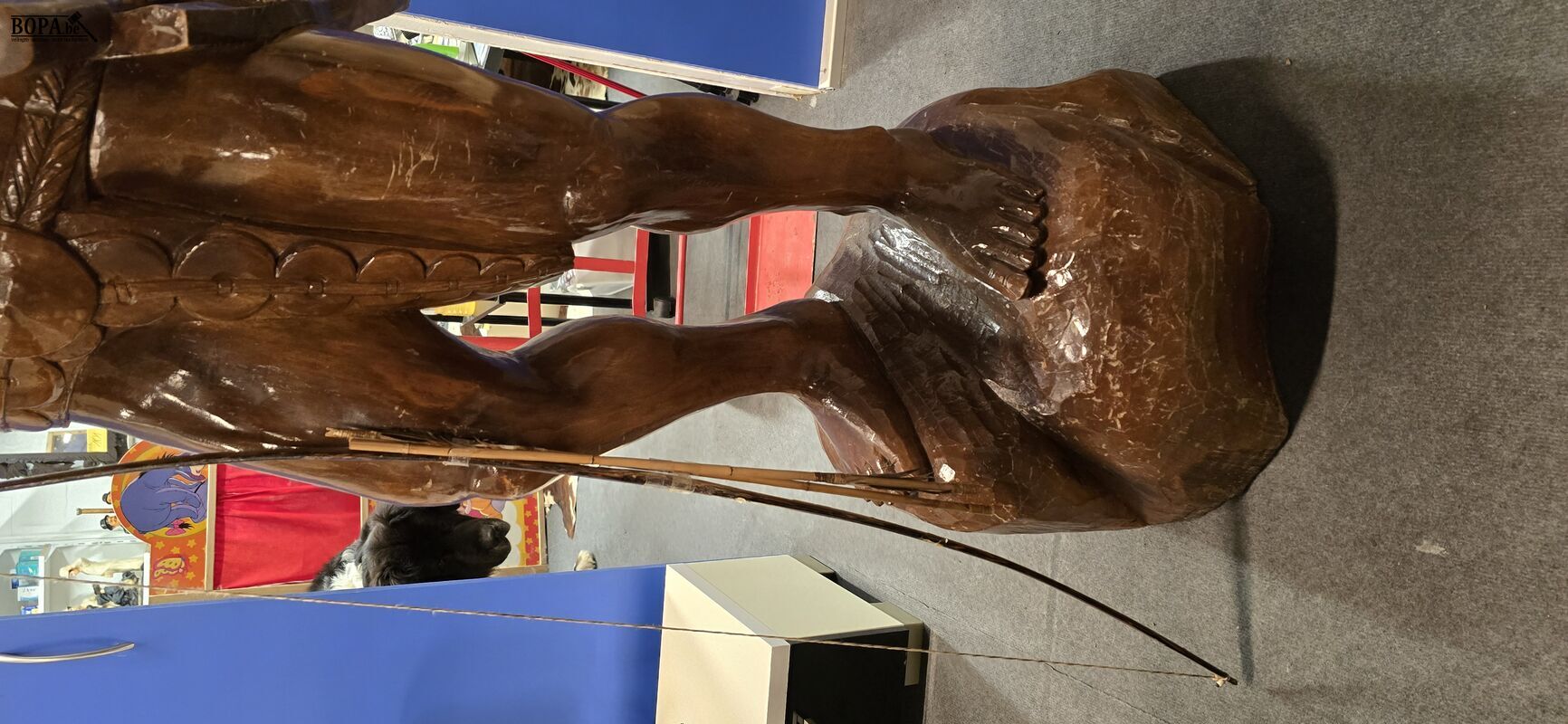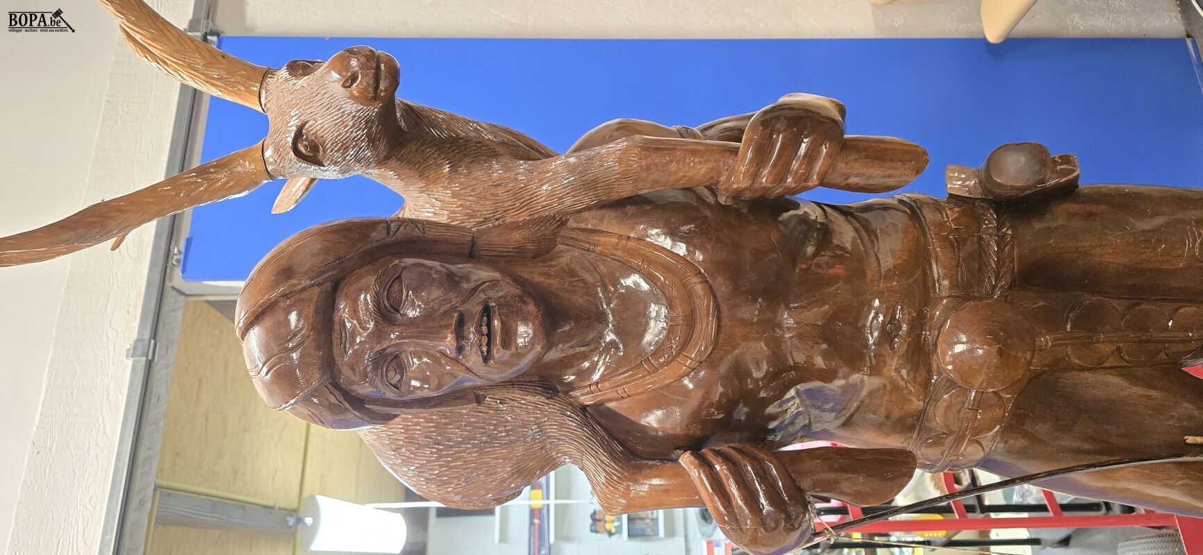 Levensgrote krijger met hert, 50 x 50 H 182 cm met gewei hoogte 215 cm